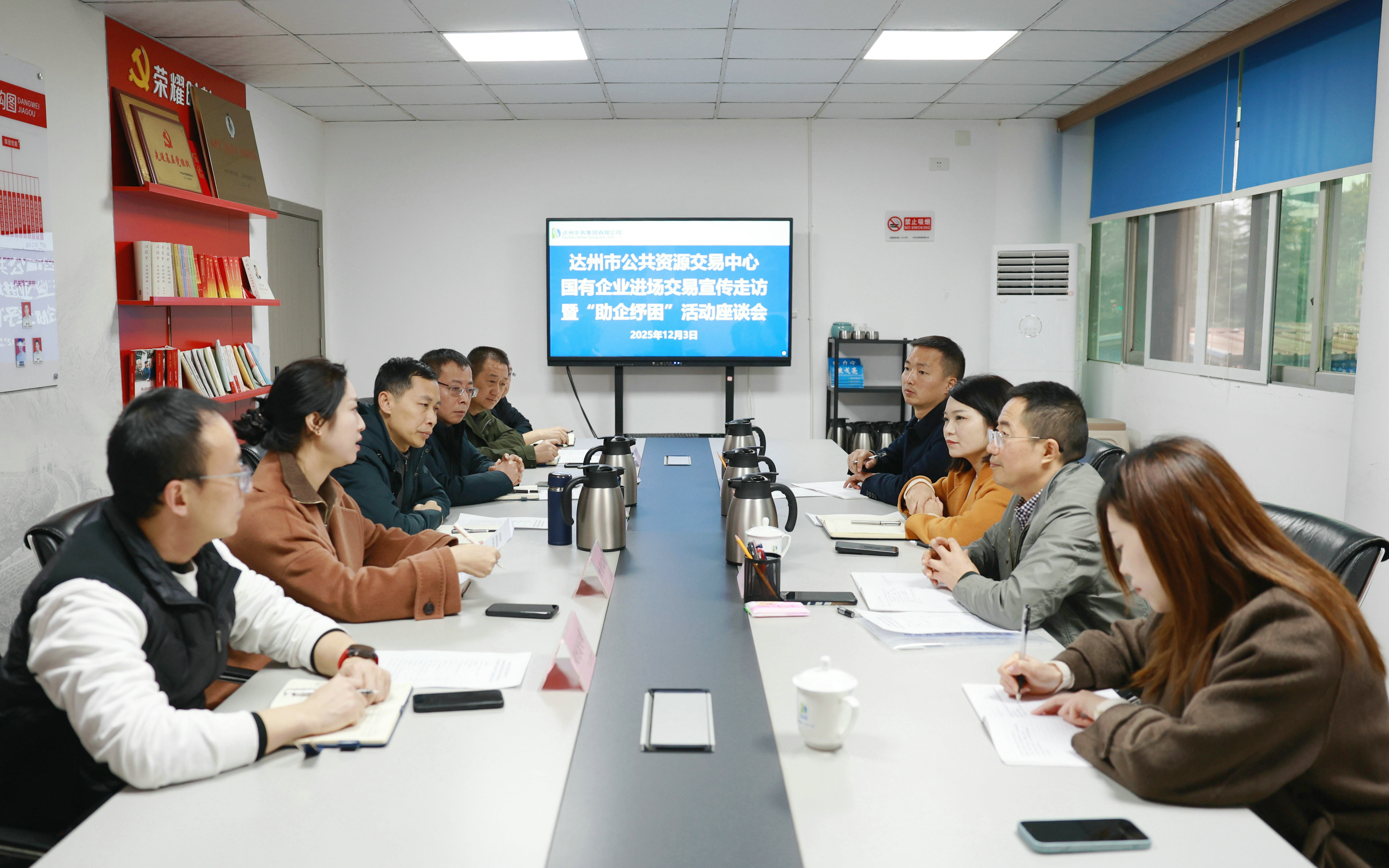 12月3日上午,市公共資源交易服務中心副主任陳曉云帶隊赴達州水務集團開展國有企業(yè)進場交易宣傳走訪暨“助企紓困”活動座談會,集團黨委委員、副總經(jīng)理楊力寧,黨委委員、副總經(jīng)理、財務總監(jiān)朱亞成和集團相關(guān)部門參加。