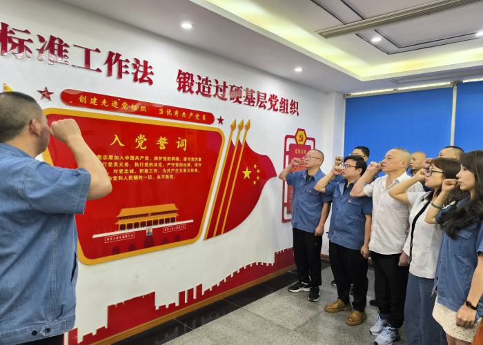 活動中,支部書記卿仕明帶領(lǐng)支部全體黨員高舉右拳,重溫入黨誓詞。“我志愿加入中國共產(chǎn)黨……”鏗鏘有力的誓言,激蕩著每一位黨員的赤誠之心。這既是對初心使命的深情回溯,更是對繼續(xù)奮斗的莊嚴承諾,激勵大家在水務崗位上勇?lián)厝?,服?/span>一方發(fā)展。
