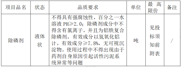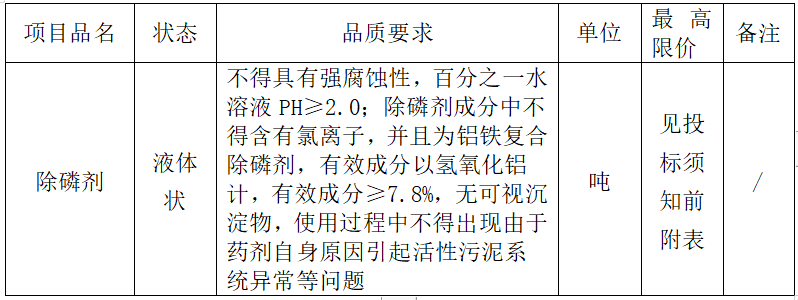 2020年度水處理藥劑(除磷劑)采購項(xiàng)目